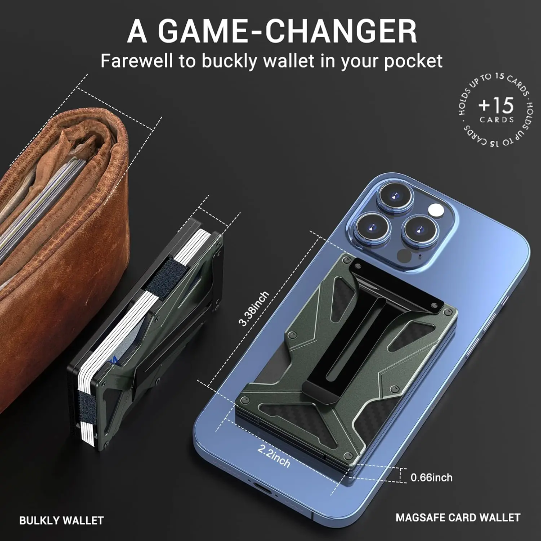 - MagSafe Card Wallet – Slim Metal RFID Wallet (Holds up to 15 Cards)